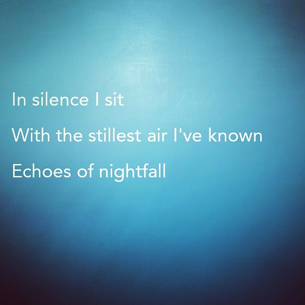 A silent evening Posted on April 14, 2016April 19, 2016 by Carl Setzer In silence I sit With the stillest air I’ve known Echoes of nightfall Share this: Click to share on X (Opens in new window) X Click to share on Facebook (Opens in new window) Facebook Click to share on Tumblr (Opens in new window) Tumblr Click to share on Pinterest (Opens in new window) Pinterest Click to share on Reddit (Opens in new window) Reddit Like Loading... Related Published by Carl Setzer Writing haiku trying to figure out life View all posts by Carl Setzer