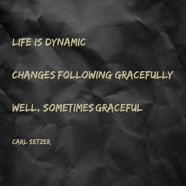 Changes Posted on November 15, 2016 by Carl Setzer Life is dynamic Changes following gracefully Well, sometimes graceful Share this: Click to share on X (Opens in new window) X Click to share on Facebook (Opens in new window) Facebook Click to share on Tumblr (Opens in new window) Tumblr Click to share on Pinterest (Opens in new window) Pinterest Click to share on Reddit (Opens in new window) Reddit Like Loading... Related Published by Carl Setzer Writing haiku trying to figure out life View all posts by Carl Setzer