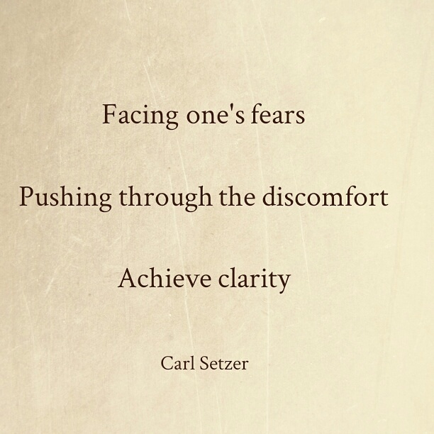 Good Morning Posted on November 17, 2016 by Carl Setzer Facing one’s fears Pushing through the discomfort Achieve clarity Share this: Click to share on X (Opens in new window) X Click to share on Facebook (Opens in new window) Facebook Click to share on Tumblr (Opens in new window) Tumblr Click to share on Pinterest (Opens in new window) Pinterest Click to share on Reddit (Opens in new window) Reddit Like Loading... Related Published by Carl Setzer Writing haiku trying to figure out life View all posts by Carl Setzer