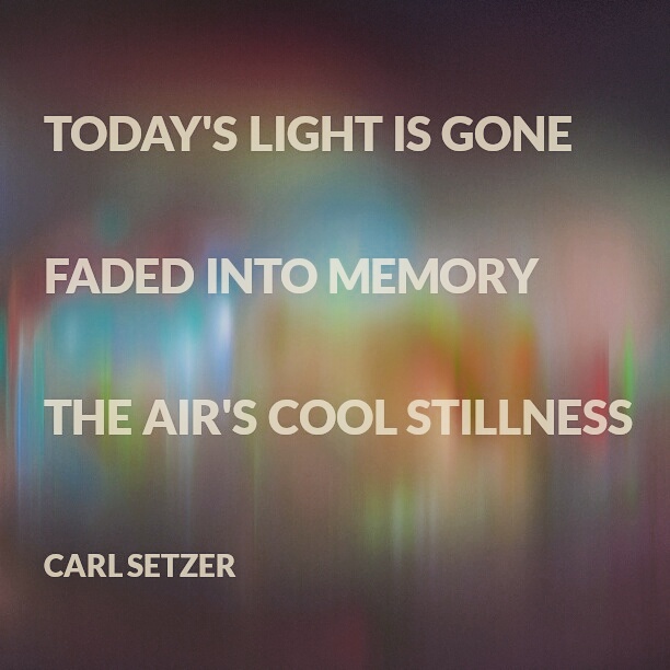 Today’s light Posted on January 30, 2017 by Carl Setzer Today’s light is gone Faded into memory The air’s cool stillness Share this: Click to share on X (Opens in new window) X Click to share on Facebook (Opens in new window) Facebook Click to share on Tumblr (Opens in new window) Tumblr Click to share on Pinterest (Opens in new window) Pinterest Click to share on Reddit (Opens in new window) Reddit Like Loading... Related Published by Carl Setzer Writing haiku trying to figure out life View all posts by Carl Setzer