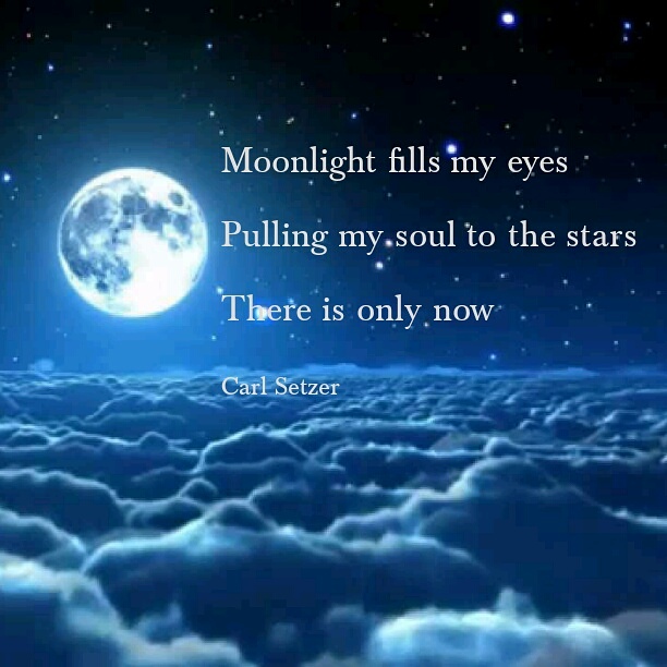 This Moonlit Night Posted on February 12, 2017 by Carl Setzer Moonlight fills my eyes Pulling my soul to the stars There is only now May this evening’s moonlight inspire and delight you. 47.832331 -122.310159 Share this: Click to share on X (Opens in new window) X Click to share on Facebook (Opens in new window) Facebook Click to share on Tumblr (Opens in new window) Tumblr Click to share on Pinterest (Opens in new window) Pinterest Click to share on Reddit (Opens in new window) Reddit Like Loading... Related Published by Carl Setzer Writing haiku trying to figure out life View all posts by Carl Setzer