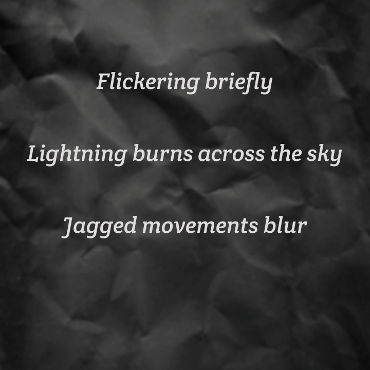 Evening Lightening Posted on May 4, 2017May 4, 2017 by Carl Setzer Flickering briefly Lightning burns across the sky Jagged movements blur Updated: spell check got me, changing “lightning” to “lightening” Share this: Click to share on X (Opens in new window) X Click to share on Facebook (Opens in new window) Facebook Click to share on Tumblr (Opens in new window) Tumblr Click to share on Pinterest (Opens in new window) Pinterest Click to share on Reddit (Opens in new window) Reddit Like Loading... Related Published by Carl Setzer Writing haiku trying to figure out life View all posts by Carl Setzer