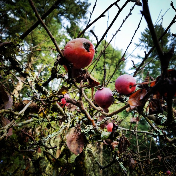 I found the apples on these neglected trees to be haunting, ghost like. Sustaining the birds as the weather turns cruel.
