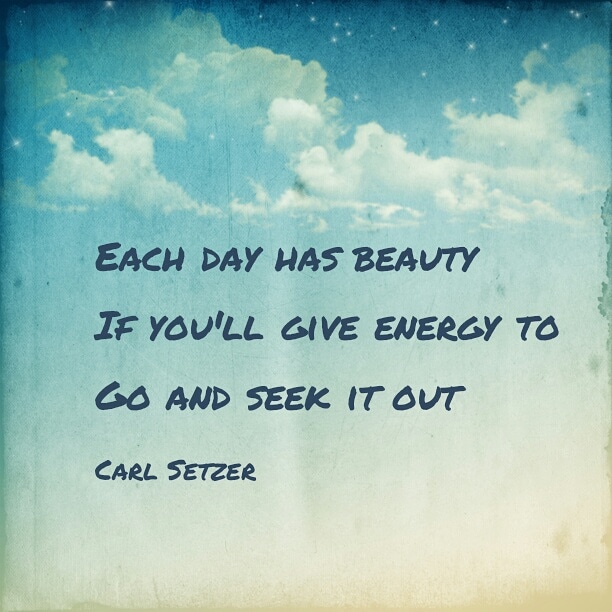 A Thursday Morning Meditation Posted on March 7, 2019 by Carl Setzer Each day has beauty If you’ll give energy to Go and seek it out Share this: Click to share on X (Opens in new window) X Click to share on Facebook (Opens in new window) Facebook Click to share on Tumblr (Opens in new window) Tumblr Click to share on Pinterest (Opens in new window) Pinterest Click to share on Reddit (Opens in new window) Reddit Like Loading... Related Published by Carl Setzer Writing haiku trying to figure out life View all posts by Carl Setzer