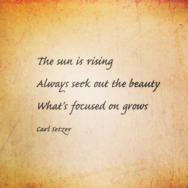This Morning’s Sunrise: A #Haiku Posted on April 7, 2019 by Carl Setzer The sun is rising Always seek out the beauty What’s focused on grows Birdsong reaches through my window. My rest distracted. Dawn comes earlier each day. A blessing of the day. I love spring. Share this: Click to share on X (Opens in new window) X Click to share on Facebook (Opens in new window) Facebook Click to share on Tumblr (Opens in new window) Tumblr Click to share on Pinterest (Opens in new window) Pinterest Click to share on Reddit (Opens in new window) Reddit Like Loading... Related Published by Carl Setzer Writing haiku trying to figure out life View all posts by Carl Setzer