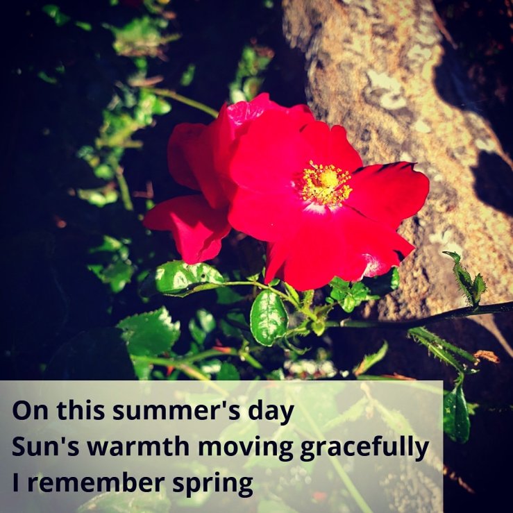 A Summer’s Day Haiku Posted on August 7, 2019 by Carl Setzer On this summer’s day Suns warmth moving gracefully I remember spring Share this: Click to share on X (Opens in new window) X Click to share on Facebook (Opens in new window) Facebook Click to share on Tumblr (Opens in new window) Tumblr Click to share on Pinterest (Opens in new window) Pinterest Click to share on Reddit (Opens in new window) Reddit Like Loading... Related Published by Carl Setzer Writing haiku trying to figure out life View all posts by Carl Setzer
