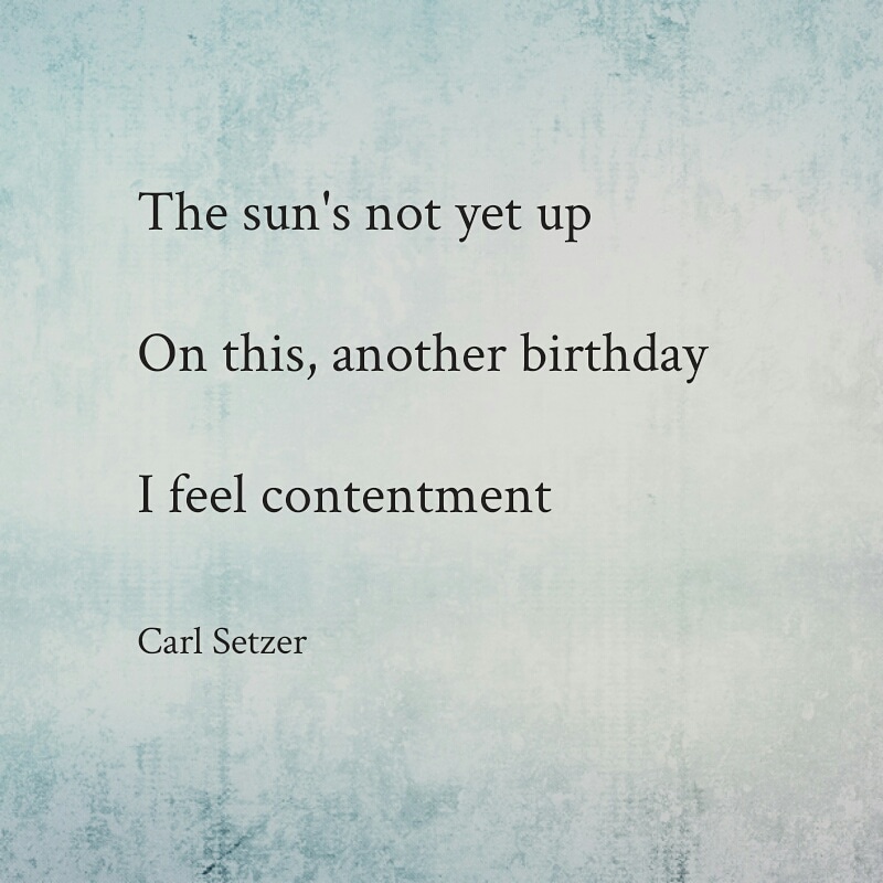 A Birthday Haiku Posted on October 1, 2019 by Carl Setzer The sun’s not yet up On this, another birthday I feel contentment Share this: Click to share on X (Opens in new window) X Click to share on Facebook (Opens in new window) Facebook Click to share on Tumblr (Opens in new window) Tumblr Click to share on Pinterest (Opens in new window) Pinterest Click to share on Reddit (Opens in new window) Reddit Like Loading... Related Published by Carl Setzer Writing haiku trying to figure out life View all posts by Carl Setzer