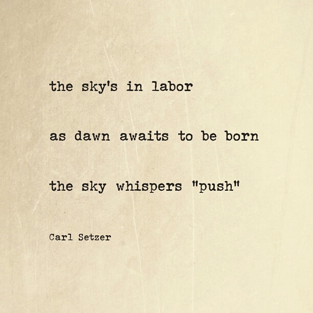 Dawn Waits To Be Born Posted on January 3, 2020 by Carl Setzer the sky’s in labor as dawn awaits to be born the sky whispers “push” Share this: Click to share on X (Opens in new window) X Click to share on Facebook (Opens in new window) Facebook Click to share on Tumblr (Opens in new window) Tumblr Click to share on Pinterest (Opens in new window) Pinterest Click to share on Reddit (Opens in new window) Reddit Like Loading... Related Published by Carl Setzer Writing haiku trying to figure out life View all posts by Carl Setzer