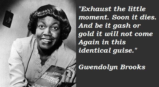 Today’s Black History Month Meditation: Gwendolyn Brooks Posted on February 11, 2020 by Carl Setzer Cherish each moment. Life’s too short. And there are no “do-overs”. Share this: Click to share on X (Opens in new window) X Click to share on Facebook (Opens in new window) Facebook Click to share on Tumblr (Opens in new window) Tumblr Click to share on Pinterest (Opens in new window) Pinterest Click to share on Reddit (Opens in new window) Reddit Like Loading... Related Published by Carl Setzer Writing haiku trying to figure out life View all posts by Carl Setzer