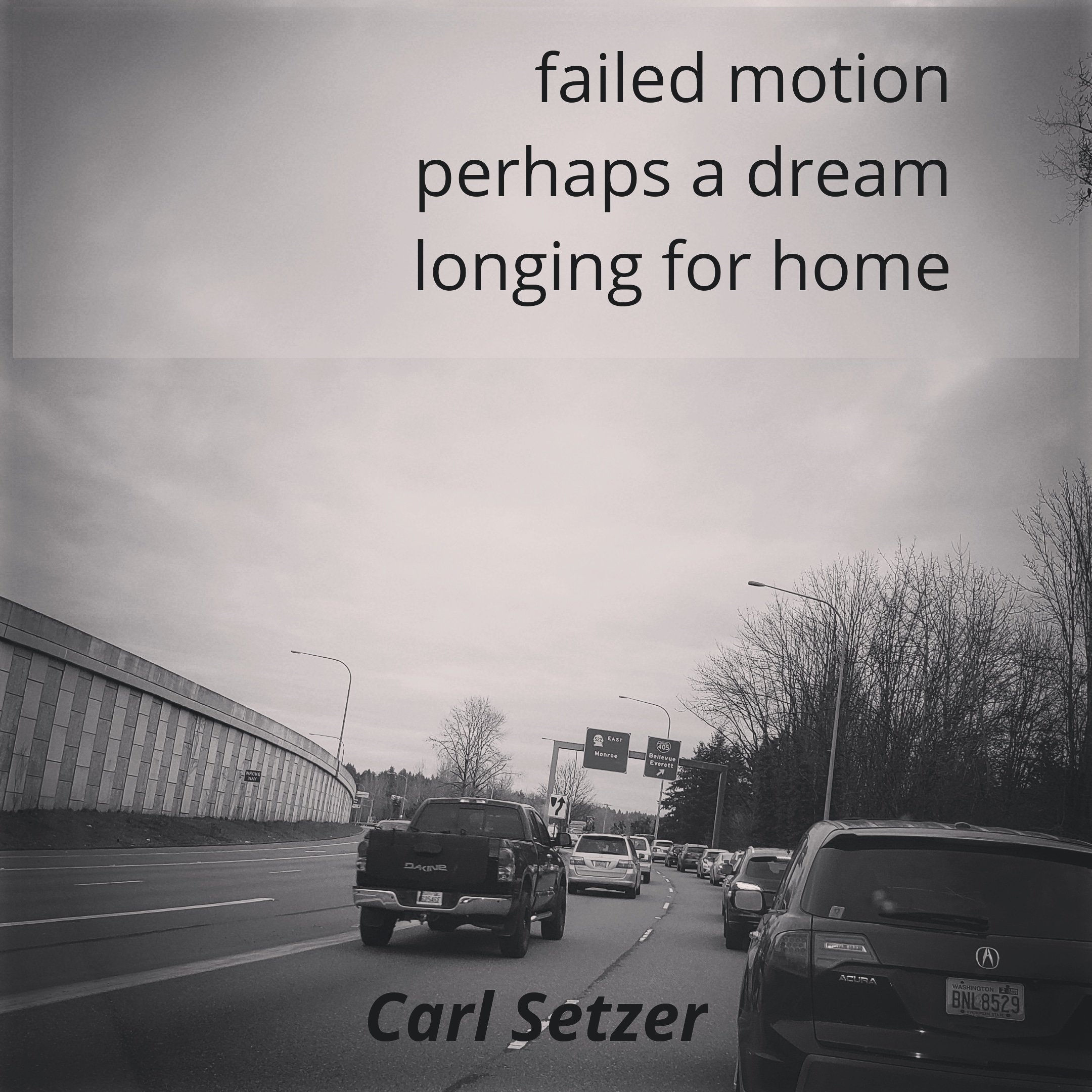 Failed Motion: Tonight’s Haiku Posted on February 28, 2020 by Carl Setzer Share this: Click to share on X (Opens in new window) X Click to share on Facebook (Opens in new window) Facebook Click to share on Tumblr (Opens in new window) Tumblr Click to share on Pinterest (Opens in new window) Pinterest Click to share on Reddit (Opens in new window) Reddit Like Loading... Related Published by Carl Setzer Writing haiku trying to figure out life View all posts by Carl Setzer