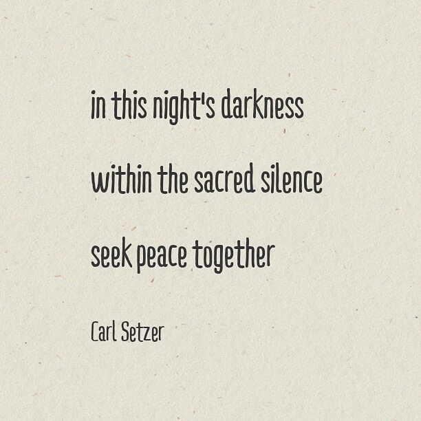 Nights Sacred Darkness Posted on March 24, 2020 by Carl Setzer in this night’s darkness within the sacred silence seek peace together Share this: Click to share on X (Opens in new window) X Click to share on Facebook (Opens in new window) Facebook Click to share on Tumblr (Opens in new window) Tumblr Click to share on Pinterest (Opens in new window) Pinterest Click to share on Reddit (Opens in new window) Reddit Like Loading... Related Published by Carl Setzer Writing haiku trying to figure out life View all posts by Carl Setzer