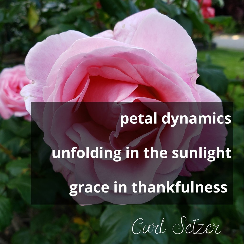 Haiku, June 22, 2020 Posted on June 22, 2020 by Carl Setzer petal dynamics unfolding in the sunlight grace in thankfulness Share this: Click to share on X (Opens in new window) X Click to share on Facebook (Opens in new window) Facebook Click to share on Tumblr (Opens in new window) Tumblr Click to share on Pinterest (Opens in new window) Pinterest Click to share on Reddit (Opens in new window) Reddit Like Loading... Related Published by Carl Setzer Writing haiku trying to figure out life View all posts by Carl Setzer