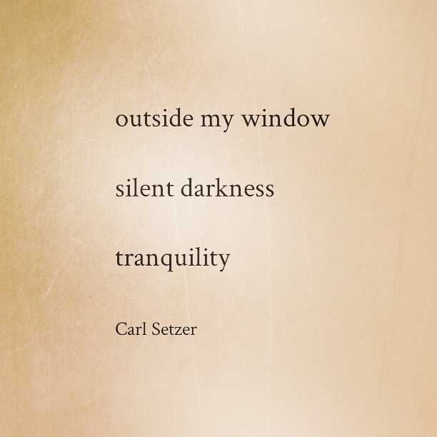 Early Morning, June 23, 2020 Posted on June 23, 2020June 23, 2020 by Carl Setzer outside my window silent darkness tranquility Share this: Click to share on X (Opens in new window) X Click to share on Facebook (Opens in new window) Facebook Click to share on Tumblr (Opens in new window) Tumblr Click to share on Pinterest (Opens in new window) Pinterest Click to share on Reddit (Opens in new window) Reddit Like Loading... Related Published by Carl Setzer Writing haiku trying to figure out life View all posts by Carl Setzer