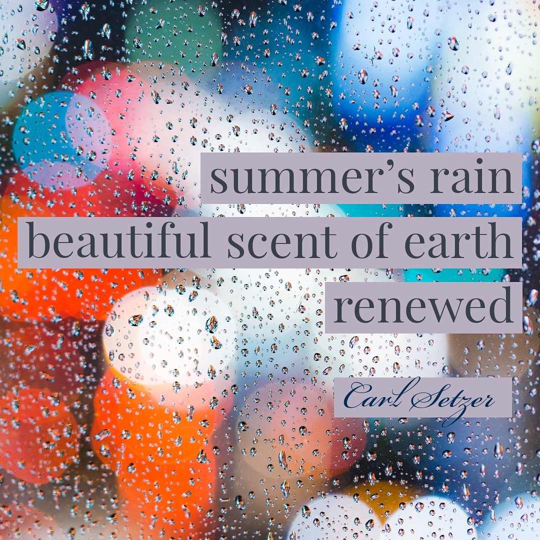 Outside I hear a rumble, then the familiar tapping sound of rainfall. I love the scent of rain falling after a hot day.