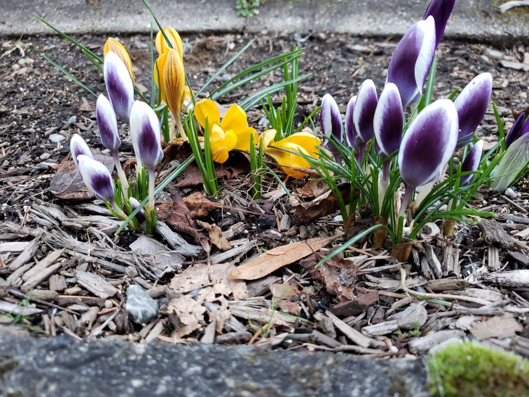 Flowers are pushing their way above the soil. Yet most of the trees remain barren. But one I saw today has a riot of small blossoms. Change continues, as it does.