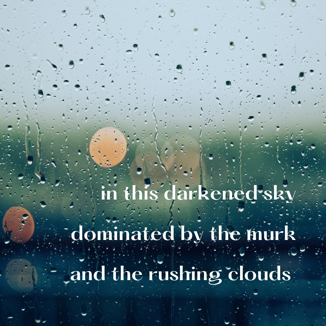 Murky Day Posted on April 9, 2023 by Carl Setzer in this darkened skydominated by the murkand the rushing clouds Share this: Click to share on X (Opens in new window) X Click to share on Facebook (Opens in new window) Facebook Click to share on Tumblr (Opens in new window) Tumblr Click to share on Pinterest (Opens in new window) Pinterest Click to share on Reddit (Opens in new window) Reddit Like Loading... Related Published by Carl Setzer Writing haiku trying to figure out life View all posts by Carl Setzer