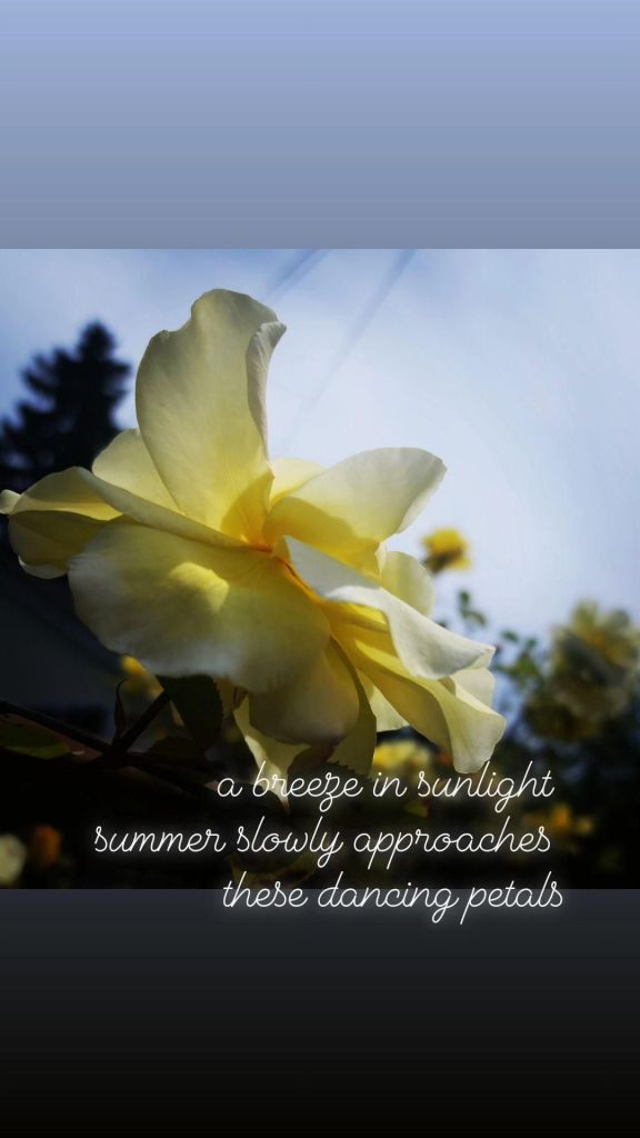 A summer haiku Posted on June 9, 2024 by Carl Setzer a breeze in sunlight summer slowly approaches these dancing petals Share this: Share on X (Opens in new window) X Share on Facebook (Opens in new window) Facebook Share on Tumblr (Opens in new window) Tumblr Share on Pinterest (Opens in new window) Pinterest Share on Reddit (Opens in new window) Reddit Like Loading... Related Published by Carl Setzer Haiku View all posts by Carl Setzer