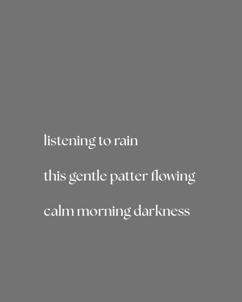 Morning Haiku: March 18, 2026 Posted on March 18, 2026 by Carl Setzer listening to rain this gentle patter flowing calm morning darkness Share this: Share on X (Opens in new window) X Share on Facebook (Opens in new window) Facebook Share on Tumblr (Opens in new window) Tumblr Share on Pinterest (Opens in new window) Pinterest Share on Reddit (Opens in new window) Reddit Like Loading... Related Published by Carl Setzer Haiku View all posts by Carl Setzer