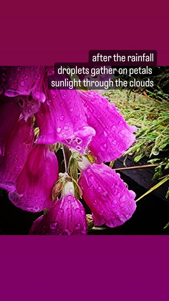 droplets gather on petals