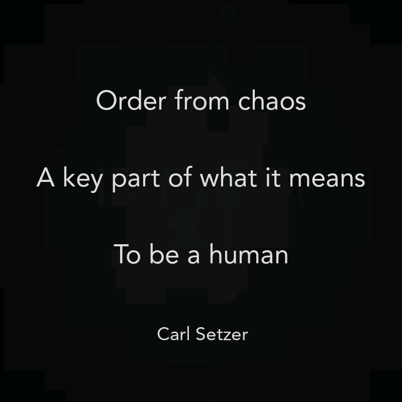 Order from Chaos August 17, 2017August 21, 2017 Carl SetzerLeave a comment Order from chaos A key part of what it means To be a human Oh, chaos stresses me so. A important struggle for me as I thrive in order. Systems are my goal, I guess. Or at least they’re my ally. Share this: Click to share on X (Opens in new window) X Click to share on Facebook (Opens in new window) Facebook Click to share on Tumblr (Opens in new window) Tumblr Click to share on Pinterest (Opens in new window) Pinterest Click to share on Reddit (Opens in new window) Reddit Like Loading...
