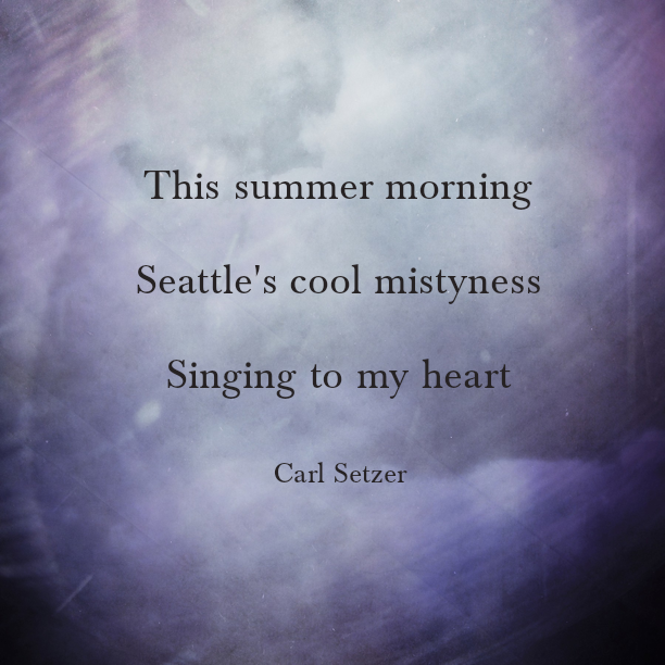 This summer morning haiku July 1, 2018 Carl Setzer2 Comments This summer morning Seattle’s cool mistyness Singing to my heart Something about Seattle’s misty mornings speak to my soul. Share this: Click to share on X (Opens in new window) X Click to share on Facebook (Opens in new window) Facebook Click to share on Tumblr (Opens in new window) Tumblr Click to share on Pinterest (Opens in new window) Pinterest Click to share on Reddit (Opens in new window) Reddit Like Loading...