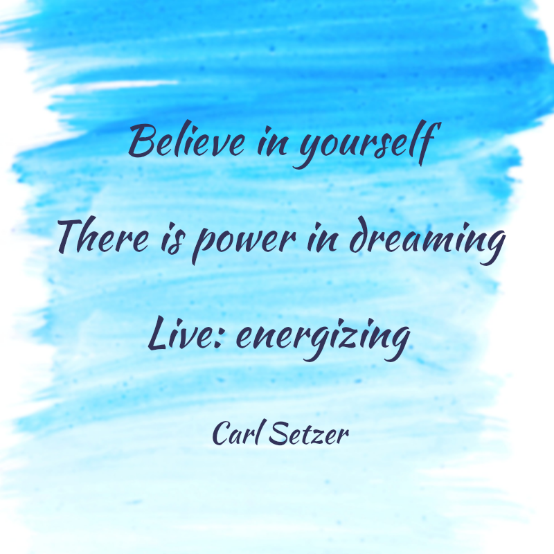 Believe in Yourself: A Haiku January 19, 2017 Carl Setzer1 Comment Believe in yourself There is power in dreaming Live: energizing *I’m saddened when self-doubt cripples dreams. Share this: Click to share on X (Opens in new window) X Click to share on Facebook (Opens in new window) Facebook Click to share on Tumblr (Opens in new window) Tumblr Click to share on Pinterest (Opens in new window) Pinterest Click to share on Reddit (Opens in new window) Reddit Like Loading...