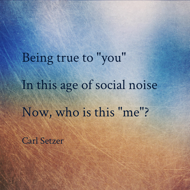 A Haiku About Being True To Yourself November 1, 2017 Carl SetzerLeave a comment Being true to “you” In this age of social noise Now, who is this “me”? Share this: Click to share on X (Opens in new window) X Click to share on Facebook (Opens in new window) Facebook Click to share on Tumblr (Opens in new window) Tumblr Click to share on Pinterest (Opens in new window) Pinterest Click to share on Reddit (Opens in new window) Reddit Like Loading...
