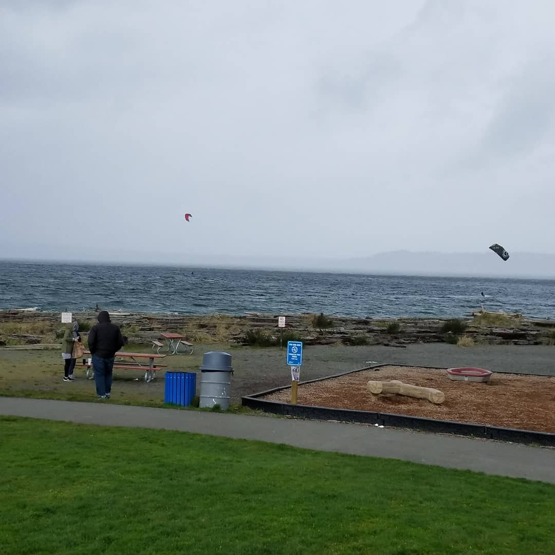 I wrote this haiku watching these two ignore cold and rain, dancing where wind and wave collide.