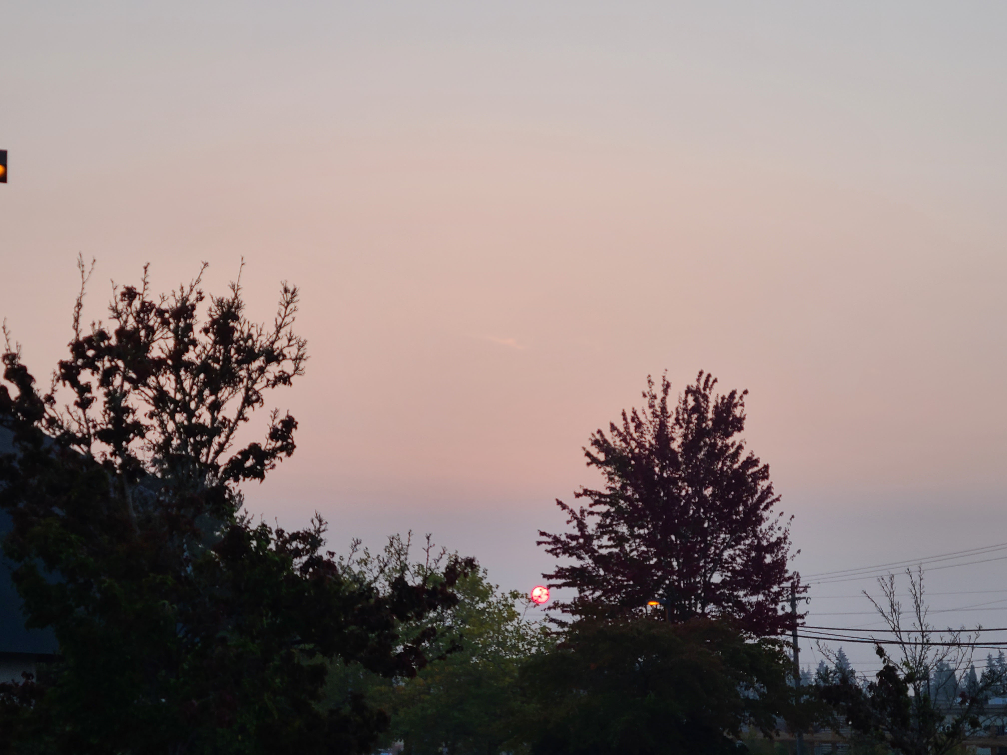 Today’s Word of the Day Challenge features “Early”, which I discovered via Woolly Muses’ response. The accompanying photo is one I took this morning. It doesn’t do justice to the red skies this morning. Quite beautiful, even though they’re caused by the smoke.